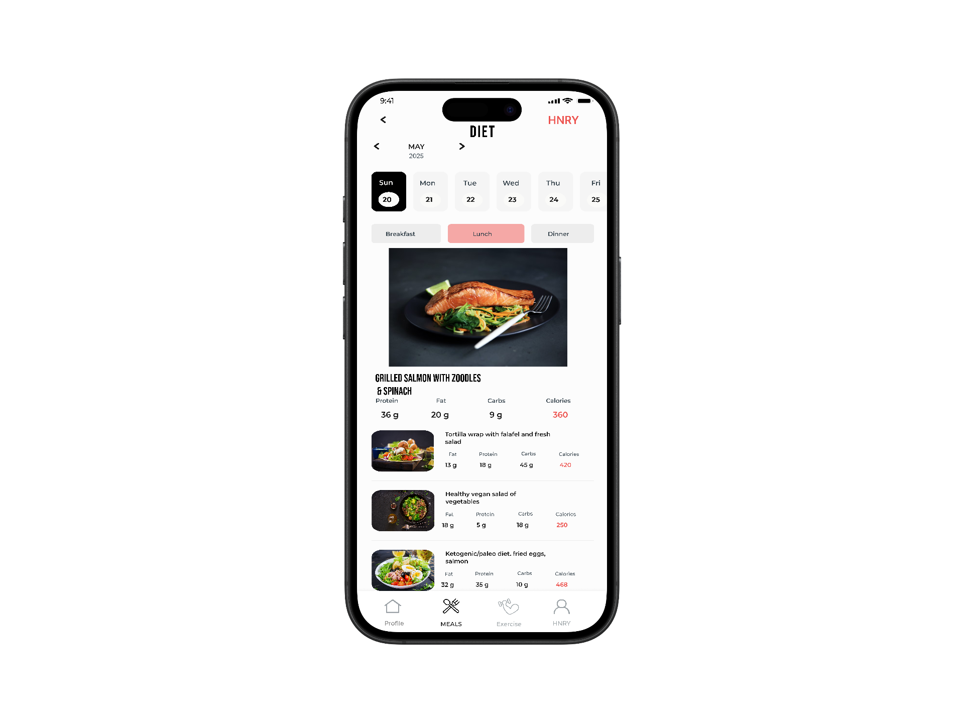 No more juggling 5 apps. HNRY builds personalized workout plans and flexible meal plans that fit your schedule, equipment, and food preferences.